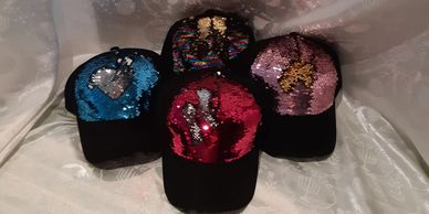 Keep the summer sun out of their eyes and off their heads during those long summer days. Whether you choose to splash their name all over the brim or a more subtle look with just initials on the side of the cap they will surely be eye catching in this sparkling beauty. A swipe of the hand changes the color...magic!